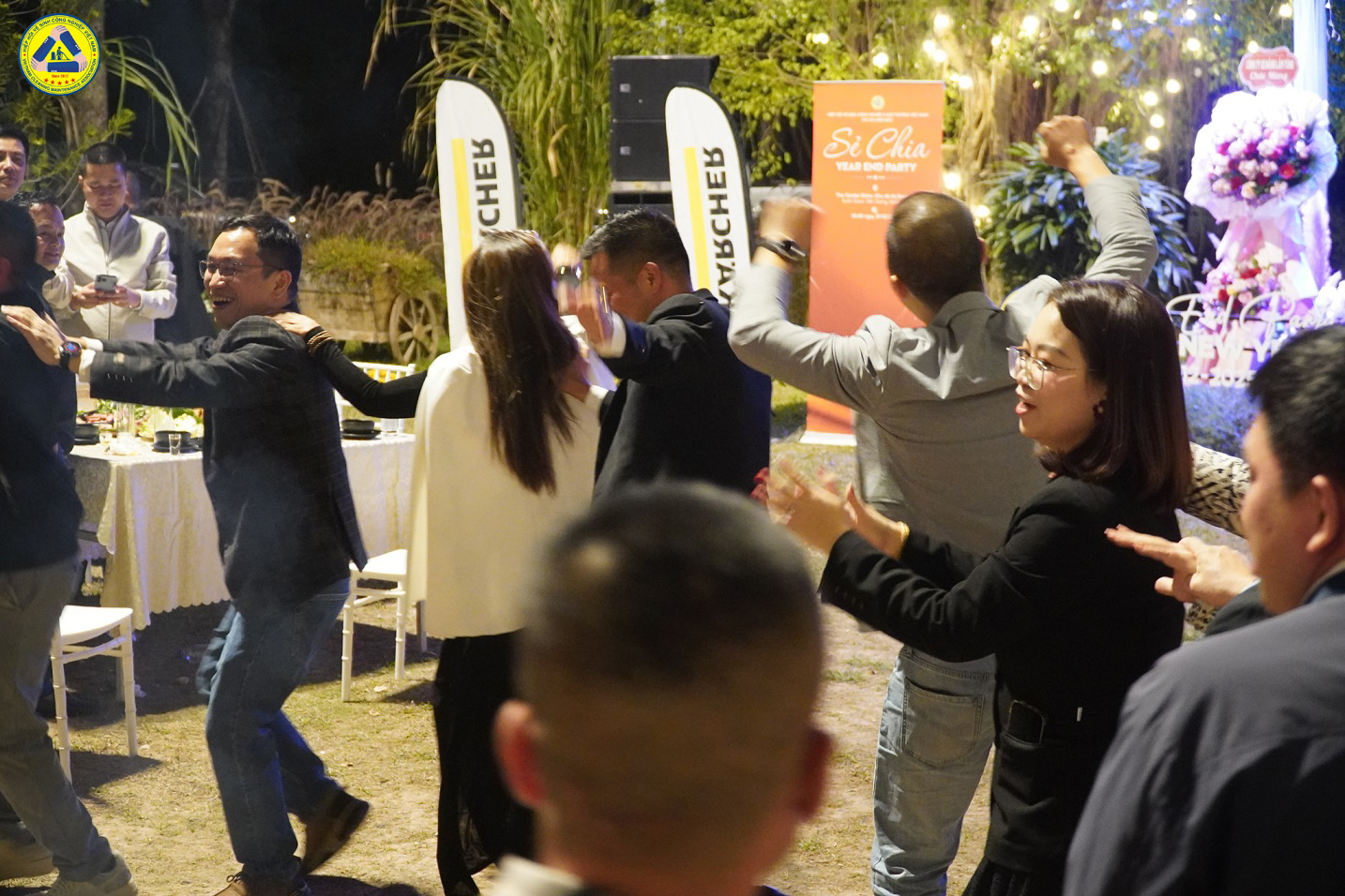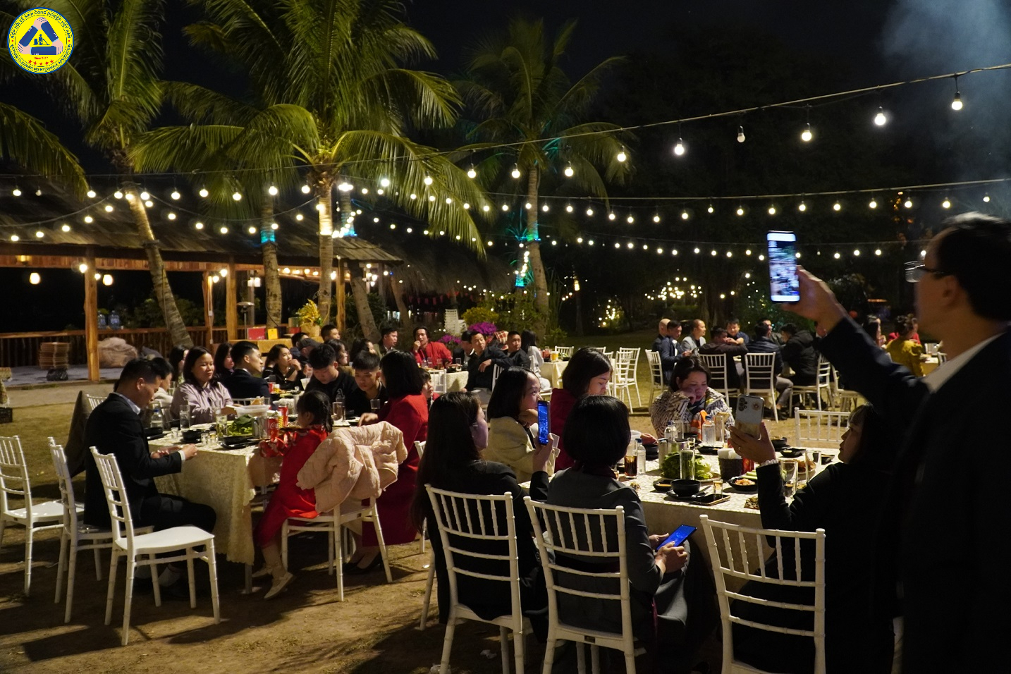 Khi màn đêm buông xuống, chương trình chuyển sang phần tiệc ngoài trời với không khí ấm cúng và sôi động. Dù thời tiết tháng 12 có phần se lạnh, nhưng chính điều đó đã khiến các thành viên tự nhiên xích gần nhau hơn để cùng sưởi ấm.
